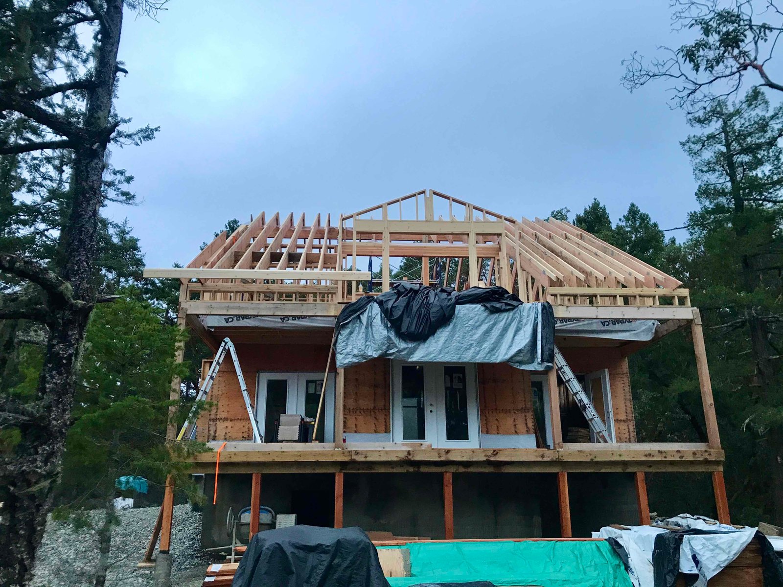 The design for our house is called Prentice from Linwood Homes. We have been using a house builder’s package, which has allowed us to customise the original design to suit our requirements, which were converted to engineered plans and then we received two tranches of building materials, which covers everything we need to ‘lock up stage’ (i.e. wind and watertight). Locking in our house builder’s contract in 2020 was fortunate, because the price of building materials has sky rocketed during Covid, with many companies price gouging. If we had not done this, there is no way we could afford to build a house on Salt Spring.
